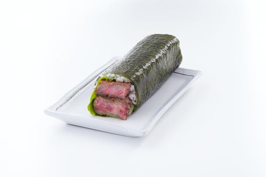 国産牛のすき焼を海苔で包んで、さらに国産牛の焼肉を上から巻き付けた、お肉をたっぷり味わえる恵方巻。