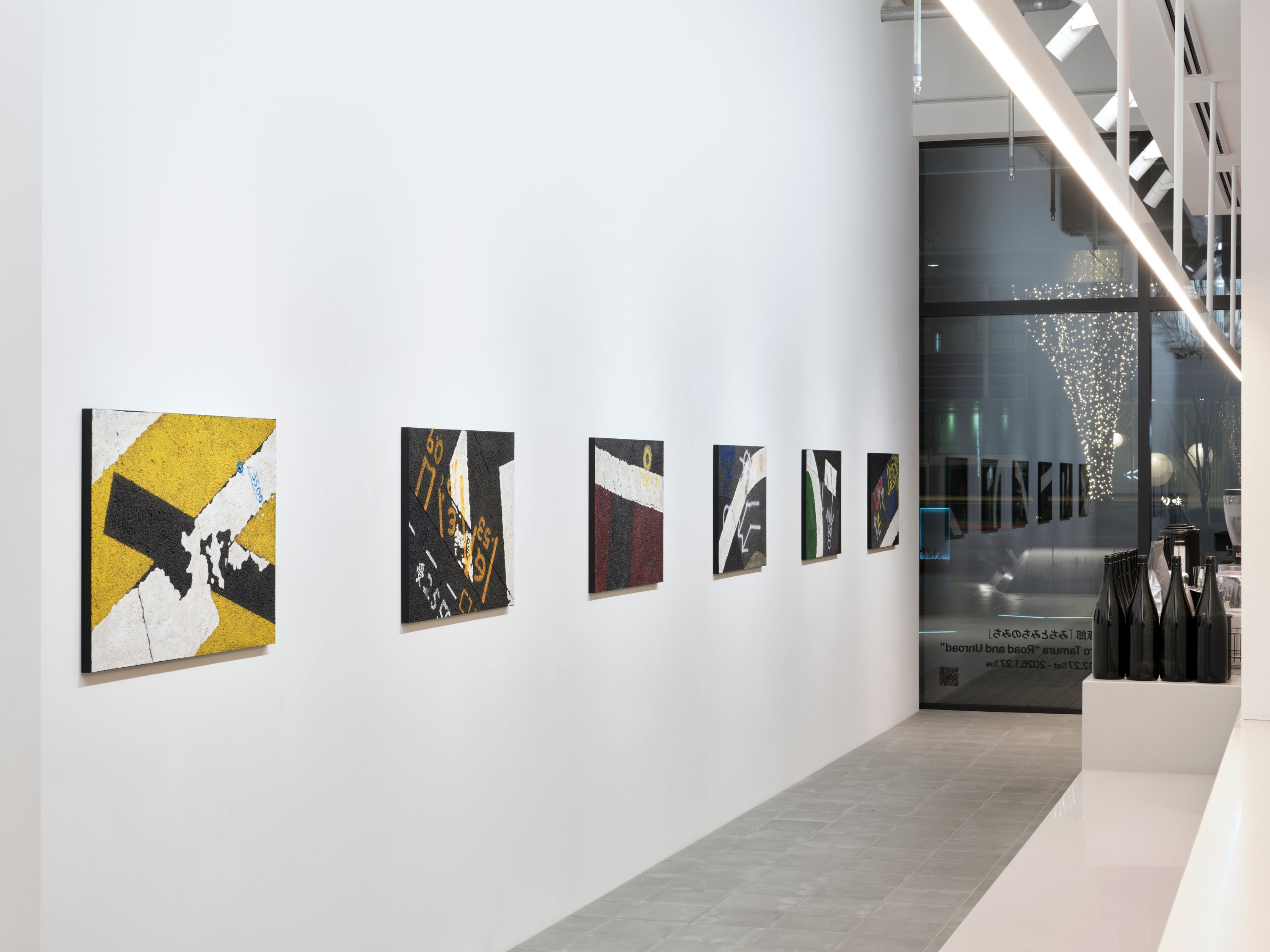 アスファルトや道路標識など、交通や都市のインフラにまつわるモチーフを取り上げた田村琢郎の新作個展「みちとみちのみち」をGallery & Bakery Tokyo 8分にて開催中