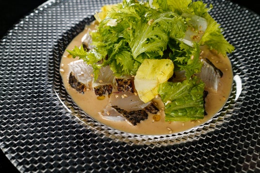 旬のヒラスズキの身をサッと炙り、焙煎胡麻のヴィネグレットで和のニュアンスを重ねました。