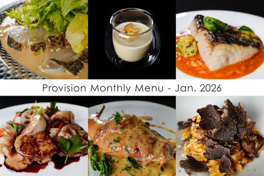 株式会社Bounty of Life(本社:東京都渋谷区 代表取締役:品治典明)が運営するサブスクリプション制フレンチレストラン『Provision』が、1月のマンスリーメニューを公開いたしました。Provisionは、完全会員制・紹介制のフレンチレストラン。会員様を含めて毎回4名様分のご飲食代を、月額会費で賄うことができるサブスクリプション制を採用しており、会員様は月に何度でもご利用いただけます。お会計の必要がないので、大切な人と過ごした楽しい時間の余韻に浸りながら、スマートにお帰りいただくことができるレストランです。何度ご来店いただいてもお楽しみいただけるよう、グランドメニューとは別に、毎月新たなお料理をご提供する「マンスリーメニュー」をご用意しております。1月は、寒鰆のグリルや紅はるかのスープなど、冬の滋味を映した新たな6品をご用意いたしました。