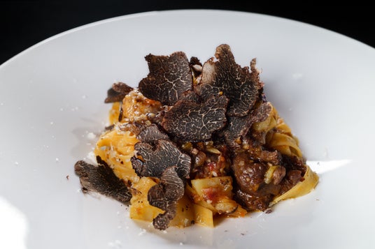 牛すじの赤ワインラグーのタリアテッレ トリュフ掛け