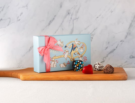 ブランドを代表する伝統の「トリュフ」、ホワイトチョコフレークで贅沢に仕上げた新作「スノーフレーク」、日本オリジナルフレーバーの「レッドハート」などを、 “ウサギのテーマパーク”をイメージした心弾むボックスに詰め合わせました。 時代を超えて愛され続ける上質な味わいを、どうぞ心ゆくまでお楽しみください。