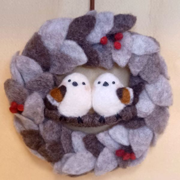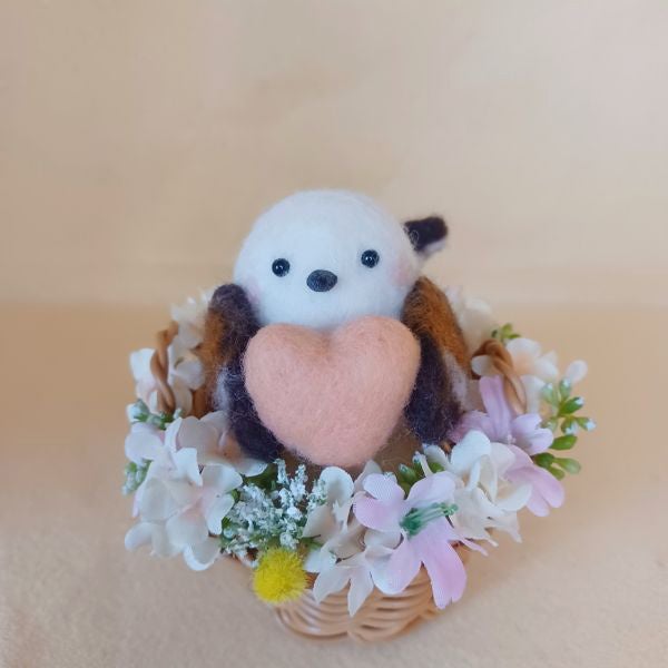羊毛シマエナガさんのハートのバスケット