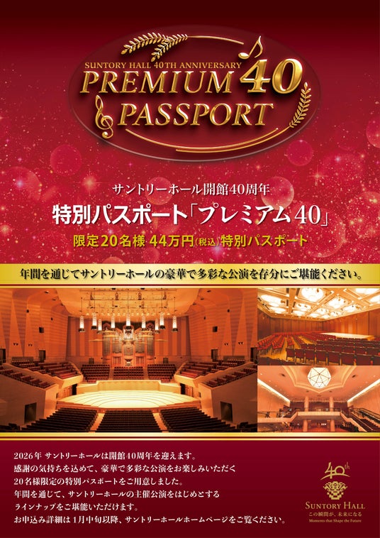 サントリーホール開館40周年 特別パスポート「プレミアム40」2月1日応募受付開始