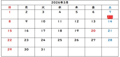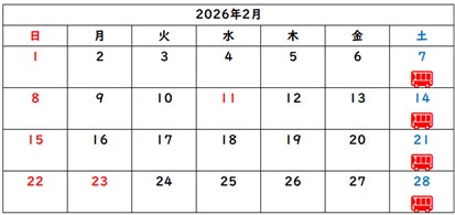 (1) 運行日 :2026年2月7日(土)、14日(土)、21日(土)、28日(土)、