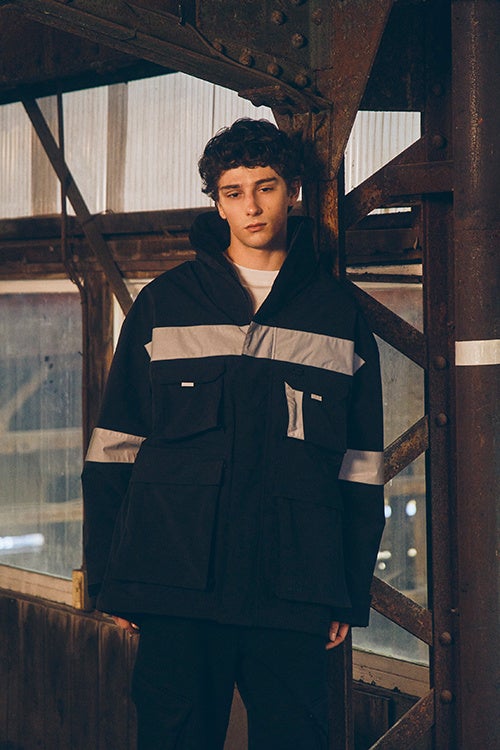 〇SECRET EMBER FIREMAN JACKET雪原の輝きと都市の未来を結びつける「SECRET EMBER FIREMAN JACKET」。 消防士のユニフォームを着想源にした力強いシルエットとリフレクティブなラインは、厳しい環境に挑む人々の姿を映し出し、着る人に頼もしさと高揚感を与えます。黒・赤・青の3色展開はそれぞれ異なる個性を放ち、都市のシーンから雪山まで自在に対応。背面にはメッセージ性のあるプリントを施し、自然と人との関わり、そして未来への視点を投げかけます。
