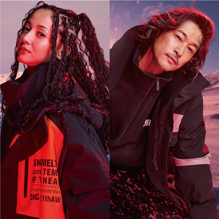 「DIG」は、日本発の新たなスポーツアパレルブランド。コンセプトは「DIG=拾う・つなぐ」。雪山での機能性と都市での洗練を融合させ、スノーウェアをタウンユースへという新しい価値を提案します。雪山と街をシームレスにつなぎ、世界に向けて“デザインで差を生むスノーウェア”という新しいスタンダードを発信します。シーズンテーマは 「The Prime of Snow」。地球温暖化で減少する自然雪の希少性に着目し、結晶が陽光を受け輝く瞬間を象徴し、透明感や光の反射をテキスタイルやカラーに落とし込み、自然の美を再解釈しました。さらに暖冬や都市部の激しい気温差に対応する温度調整素材を採用し、スポーツから日常まで快適性を実現。機能性とデザイン性を掛け合わせ、スノーを起点に都市とスポーツをつなぐ新たなアーバンウェアを発信します。