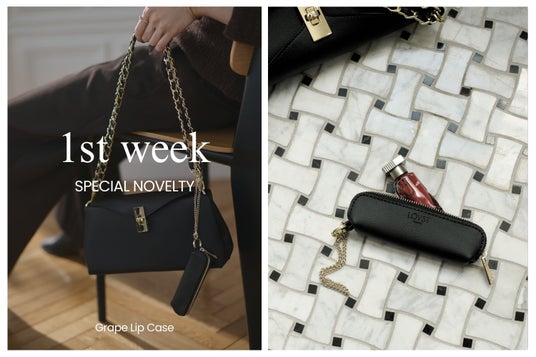 POP-UP第1週目の1月14日(水)から21日(水)までは、ワインの搾りかす由来の「グレープレザー」を採用したバッグチャームとしても使える「Grape Lip Case(グレープリップケース)」が登場。税込2万2千円以上お買い上げの方、先着50名さまにプレゼントさせていただきます。