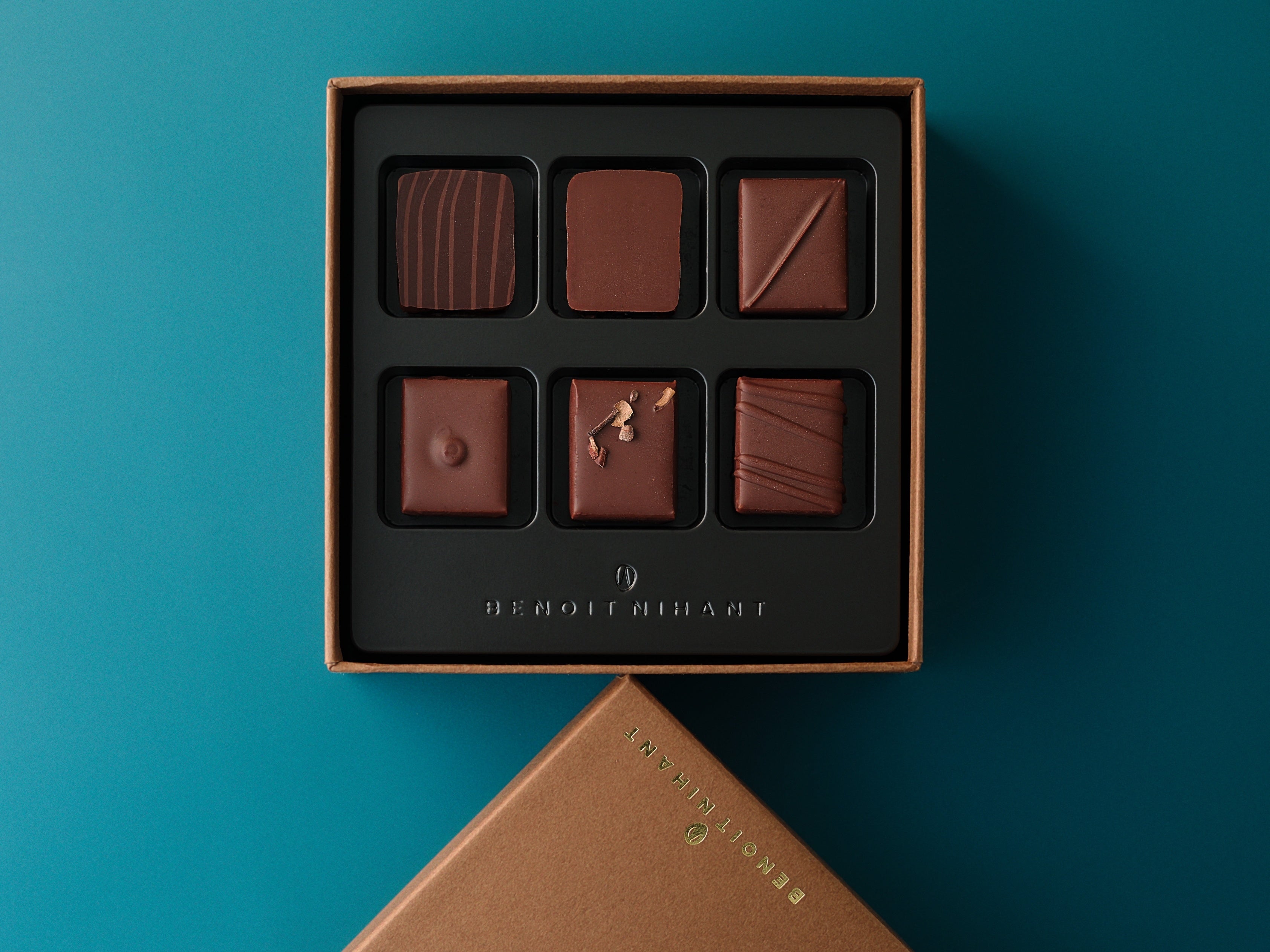 「グランクリュ ボックス 6個入」(6種6個入)/3,672円ブノワ・ニアンが世界各地で出会った、個性豊かなカカオの魅力をひと箱に詰め合わせたアソート。