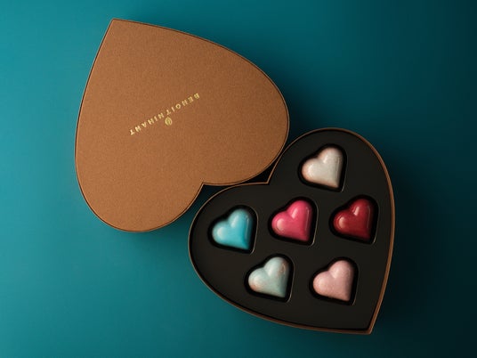 ブルーの煌めきが印象的な〈ブルー デトワ〉3種に、華やかな赤とピンクのボンボン--パッションフルーツ、アーモンド&ココナッツのプラリネ、ローズ--を組み合わせた6粒のアソートです。可憐な彩りと味わいが揃った、バレンタインギフトにもおすすめの一品です。