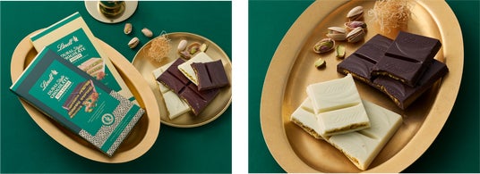 『ダーク』は、リンツ70%カカオダークチョコレートに、上質なピスタチオペーストとサクサクとしたカダイフの食感が重なり合い、深みと豊かさに満ちた大人の味わいとなっております。一方『ホワイト』は、クリーミーでなめらかなリンツホワイトチョコレートに、上質なピスタチオペーストと香ばしいカダイフを贅沢に詰め込み、まろやかな甘みと食感の一体感をお楽しみいただけます。ぜひ食べ比べて、2つの違いをお楽しみください。