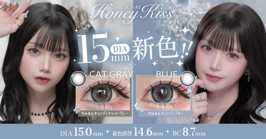 大人気カラコンブランド『Honey Kiss(ハニーキス)』からDIA15.0mmの新色2カラーが発売!