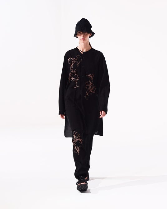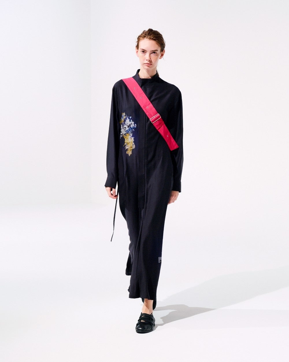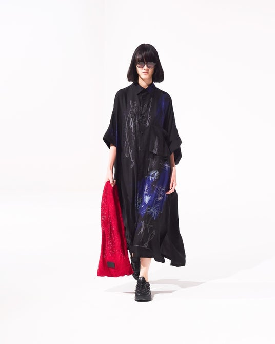 荒々しい花たちを表現したドルマン型のシャツドレス。