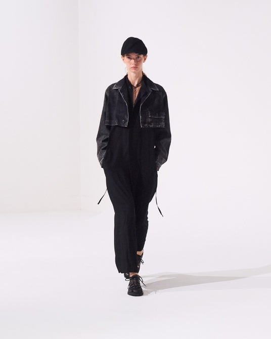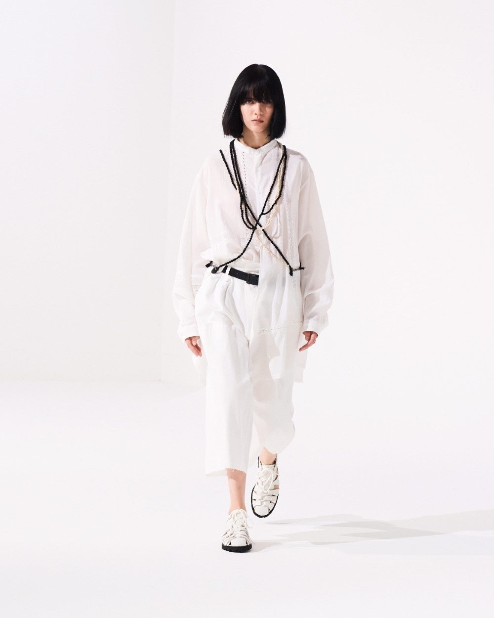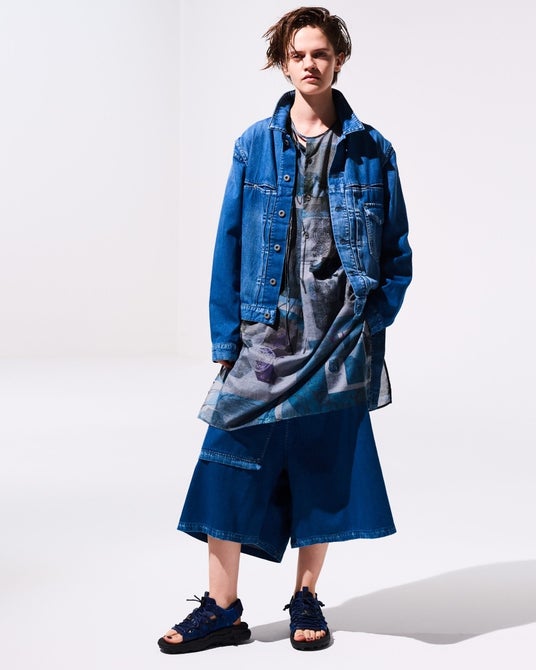 インディゴデニムとの組み合わせで、軽やかさと存在感が共存するY’sらしい装いを提案する。