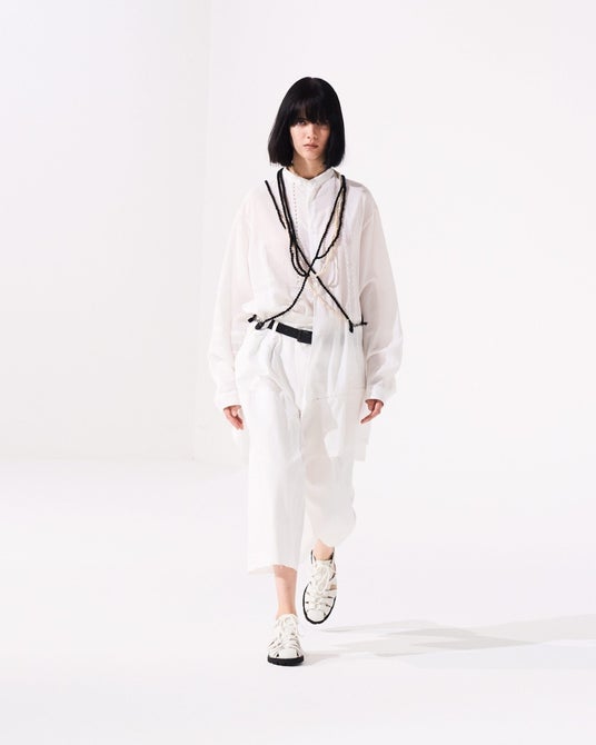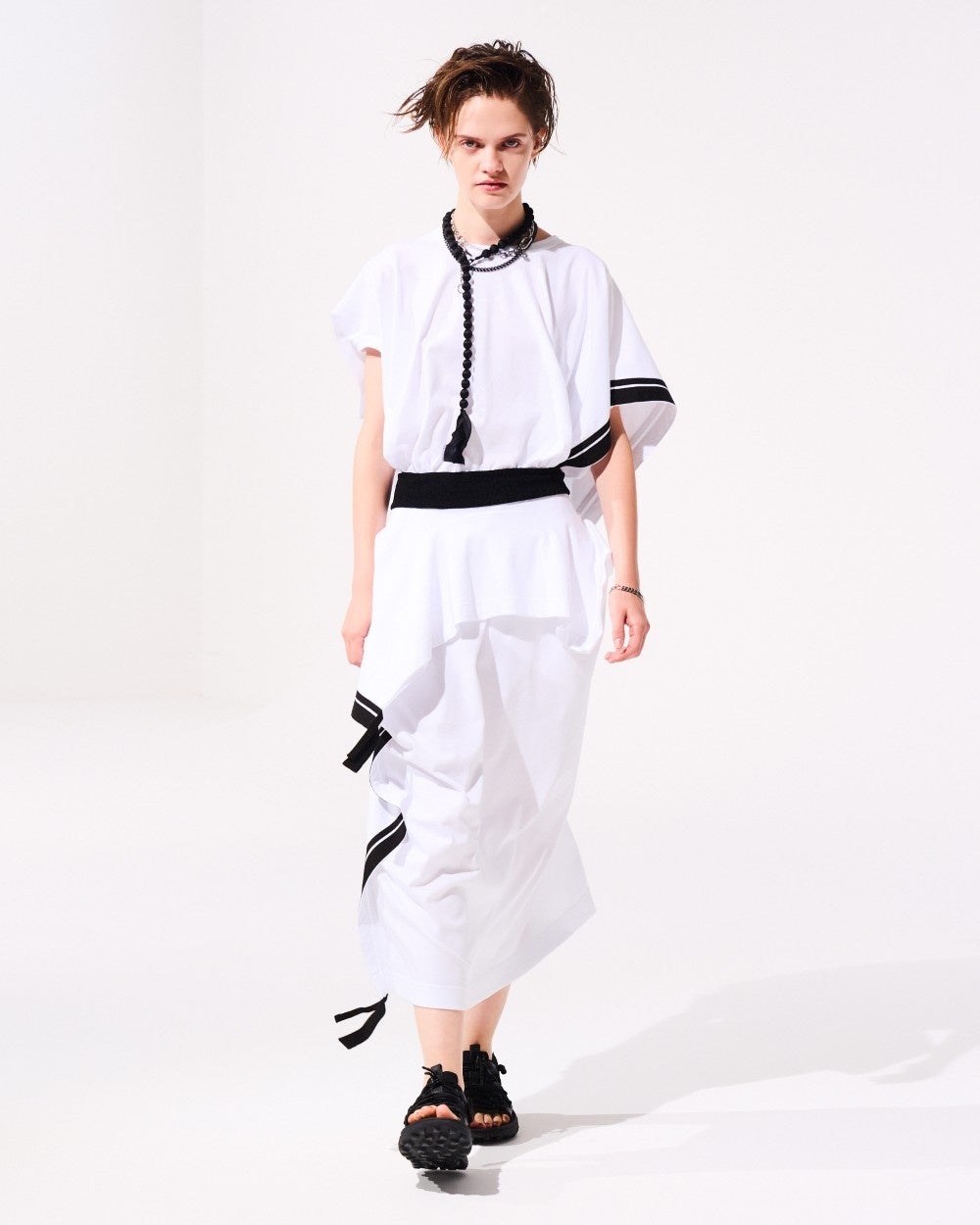ラインテープやドレープ感が動きのある軽やかなシルエットを描く。