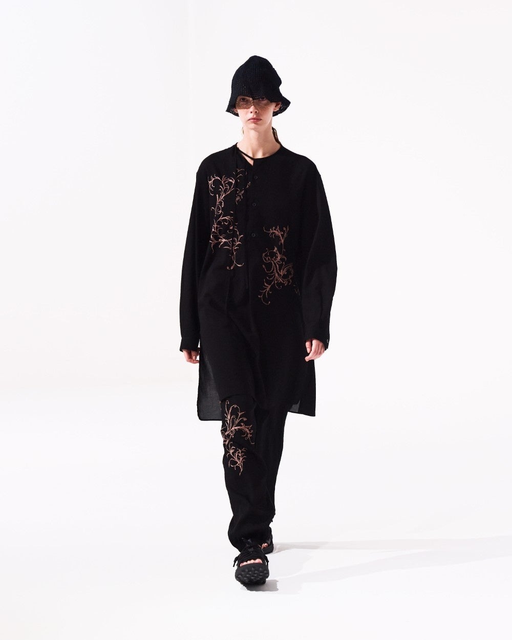 Y’sとYohji Yamamotoの刺繍が隠れ、エスニックとピンクの色彩が軽やかさと開放感を演出する。