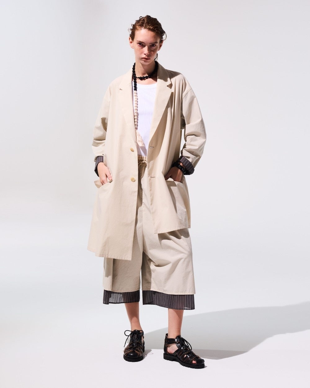 機能性に優れたナイロンコート、プリーツやテープを用いたスポーティなレイヤード、空気を纏うギャザースカート、ティアードドレス。