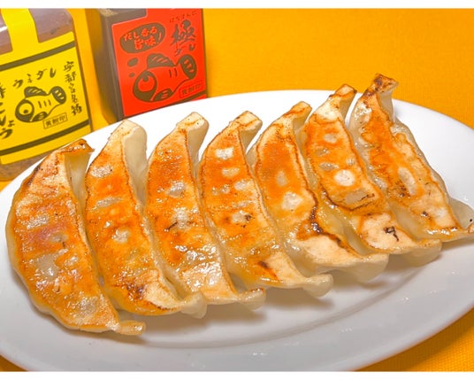 モチモチ皮と何個食べても飽きない味を追求した餃子。自家製の和風酢醤油タレか酢コショウ、お好きな方を選べます。