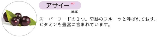 ※3 アサイーエキスはアサイヤシ果実エキス・スクワラン、Sはスクワランです。