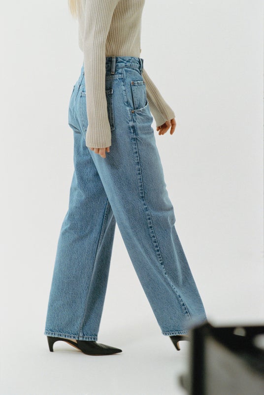 本別注は、SALON adam et rope'のためにセレクトした“ウォッシュインディゴ”のカラーリング。深みがありながらも重くなりすぎない色合いは、本格的なヴィンテージデニムの表情を持ちつつ、クリーンで洗練された印象に仕上げています。絶妙な太さできれいな落ち感が魅力のストレートデニム「Dakota(ダコタ)」は、 腰を落として穿いているようなラフさは残しながらも、程よくフィットするウエスト設計。脚が綺麗に見える股位置と太さにこだわり、美しいストレートラインを実現しました。メンズライクなビッグシャツは、一枚でも、羽織としても様になるサイジングで、同色のデニムパンツとのセットアップスタイルも楽しめます。