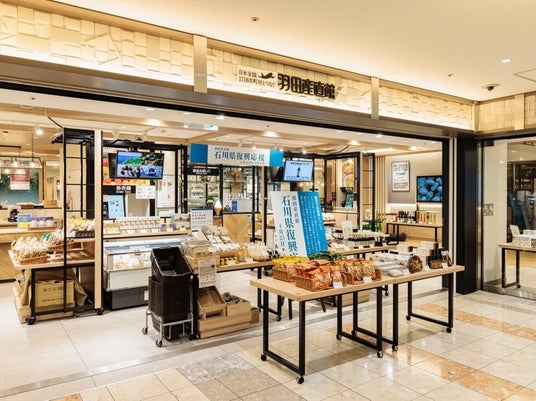 羽田空港第1ターミナル羽田産直館において、熊本で活躍するつくり手たちの商品を「見て・知って・食べて・持ち帰る」ことができます。対象のくまもとモン1点以上ご購入の方は羽田空港限定のオリジナルくまモン缶バッジをもらえます(※)。