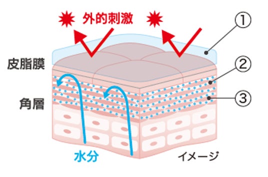 肌上にうるおいの膜をつくり、水分が逃げるのを防ぎ外的刺激※2から肌を守ります。