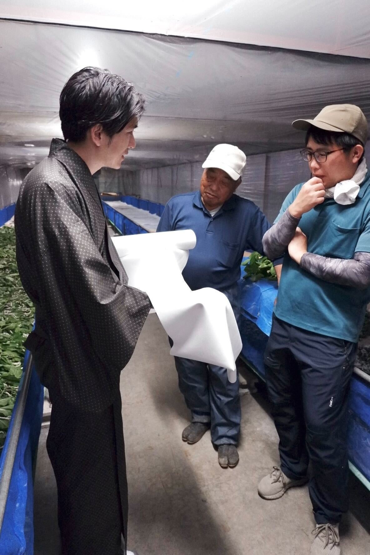 (写真左)泉二啓太(写真中央/右)養蚕農家の高橋様親子