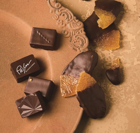 <徳島>「プリズムラボ」左)PRISM Chocolat selection4(4粒入り)2,000円[阪急限定アソート]、右)木頭ゆずピールショコラ(100g入り)2,880円