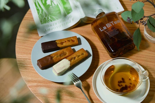左)「ミニマル ビーントゥーバーチョコレート」FRUITY(1枚20g)501円、右)「和紅茶専門店レインブラントティー」【宮崎茶房】香酸1st 2025(30g入り)981円