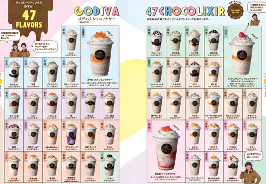ゴディバのショコリキサーと47都道府県の素材を掛け合わせた47種類のオリジナルドリンクが登場。47都道府県をまるで旅するように会場でお楽しみいただきます!9日間で全種類制覇するチョコ偏愛者は現れるのでしょうか...。