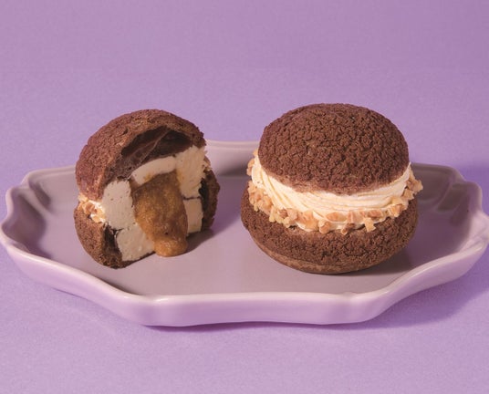 クリームに忍ばせた「La.BiTea」のブラックティーが、アーモンドプラリネやカカオ風味のシューと絶妙にマッチしたシュークリームです。