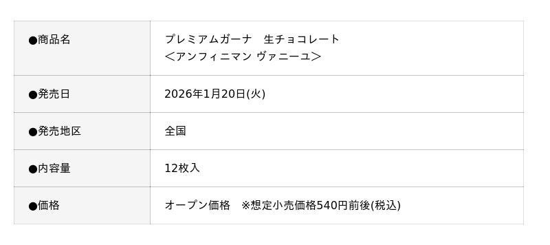 株式会社ロッテ(東京都新宿区、代表取締役社長執行役員:中島英樹、以下ロッテ)は、身近に買える、まるで専門店クオリティの「プレミアムガーナ」ブランドより、バレンタインコレクション2026の3品を1月20日(火)より発売します。昨年SNSを中心に大きく話題となった、ピエール・エルメの代表的なフレーバーとのスペシャルコラボレーションが今年も実現しました。ピエール・エルメは世界のスイーツをリードし「パティスリー界のピカソ」と言われ、常に創造性あふれるお菓子作りに挑戦し続けています。今年は、「どこまでも限りなく」を意味する「アンフィニマン」フレーバーにフォーカスし、素材の持つ味わいや香りを追求した3品を完成させました。昨年「幻の青いガーナ」として特に話題になった「生チョコレート<アンフィニマン ヴァニーユ>」は、バニラ風味をより感じられるように品質を進化させて発売します。