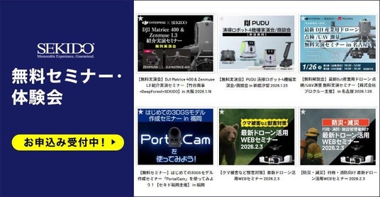 セキドではより多くの事業者の方にドローンを使った業務効率の改善を実現していただくため、業務用ドローンや関連ソリューションをご紹介する無料セミナーやイベントを定期的に開催しております。今後もオンラインや全国各地での開催を予定しておりますので、ご興味をお持ちのイベントにはぜひお気軽にご参加ください。