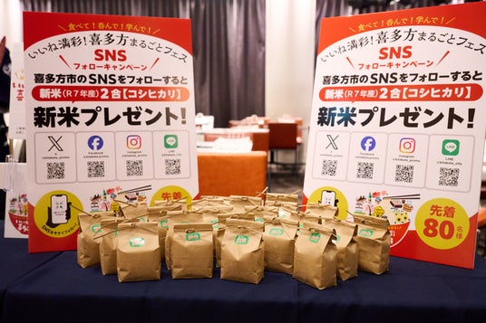 さらに!大好評だった会場限定開催のSNSフォローキャンペーンを今回も実施します。会場内で喜多方市のSNSアカウントをフォローすると喜多方産の美味しいお米がもらえるということで、参加者であればどなたでもお米をゲットするチャンスがあります!