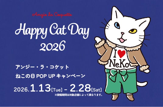 SNSで大注目の白猫のキャラクター「アンジー・ラ・コケット☆麗しのアンジー」の「ねこの日POP UPキャンペーン」を、1月13日(火)から全国のポップアップ9店舗にて開催!