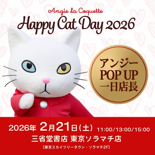 ねこの日の前日となる2月21日(土)には、三省堂書店 東京ソラマチ店にてアンジーの一日店長を実施いたします。当日の実施時間帯には、アンジーとの記念撮影をお楽しみいただけます。ぜひ店頭にお越しください。