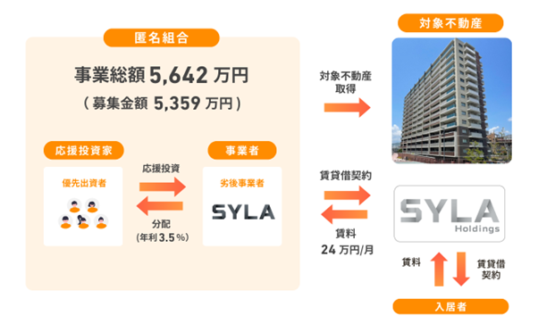 “応援を新しいカタチで”をコンセプトに、一口1万円から、社会貢献や地域創生、誰かの夢や挑戦に繋がる不動産に応援投資ができる“応援型不動産クラウドファンディングプラットフォーム”です。