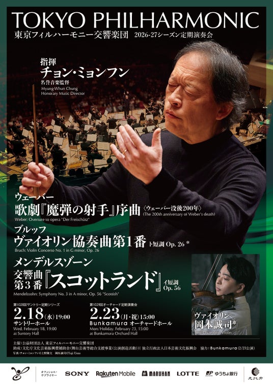 公益財団法人 東京フィルハーモニー交響楽団(以下、東京フィル/所在地:東京都新宿区、理事長:三木谷浩史)が、2026年1月~2027年2月シーズン定期演奏会の上半期(1月・2月・5月・6月)の1回券の一般販売を開始いたしました。