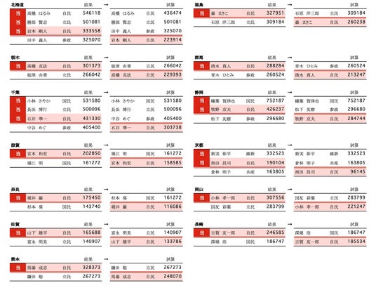 過去の選挙結果に公明党離脱という仮定を置き、当落が入れ替わり得る選挙区を試算