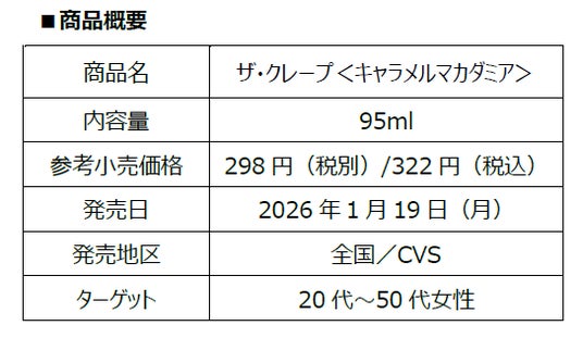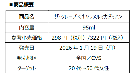 森永製菓株式会社(東京都港区芝浦、代表取締役社長COO・森 信也)は、しっとり・もちもち食感のクレープ生地のクレープアイス「ザ・クレープ」ブランドより、1月19日(月)より「ザ・クレープ<キャラメルマカダミア>」を期間限定で発売いたします。