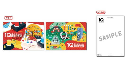 また今回、入場特典として、「QuizKnock10周年記念展」にお越しいただいたお客様に、先着で「限定ポストカード」をプレゼントすることが決定いたしました。限定ポストカードの絵柄は全2種で、このうち1枚をランダムでプレゼントいたします。さらに、開催記念グッズの販売も予定しております。