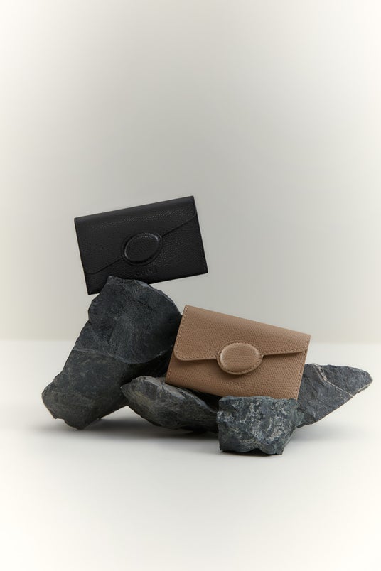 上質なイタリア製のテクスチャード/ペブルドレザーにはBasaltモチーフをマウントし、さりげなくグレードアップ感を醸成。スリムなデザイン、軽量コンパクトで、使いやすさと収納しやすさを両立。スナップボタンで開け閉めしやすく、デュアルスロットも2か所に装備し、カードから名刺まで、すっきりと整理して持ち運べます。