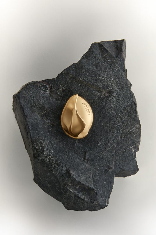 コレクションの核となるBasalt金具は、新たに採用したブラッシュドゴールド仕上げによる、細かな粉末状の模様が描き出す落ち着いた光沢感が魅力。上品で高級感のある見た目に加え、指紋や小傷が目立ちにくいという実用的なメリットも。優雅な質感と、自然が形作ったかのような非対称なフォルムで、自然石ならではの荒々しくも美しい質感を表現しました。