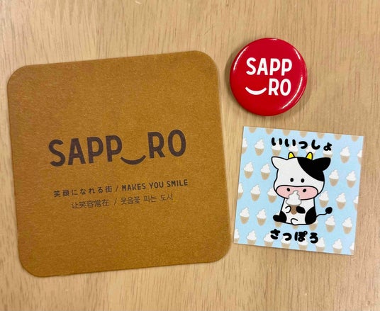 サッポロスマイルグッズ3点セット(コースター、バッジ、ステッカー)