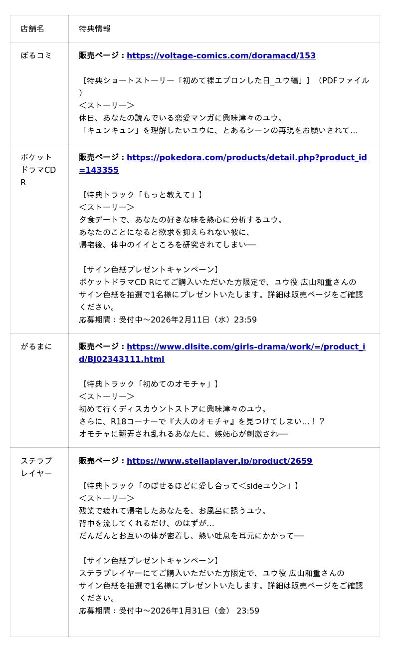 販売サイト:ぼるコミ、DLsiteがるまに、ポケットドラマCD R、ステラプレイヤー