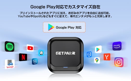 GetPairr AI Box 2.0(ゲットペアー)は、純正の有線CarPlay搭載車のUSBポートに接続することで、車載ディスプレイの使い方を拡張するAI Boxです。