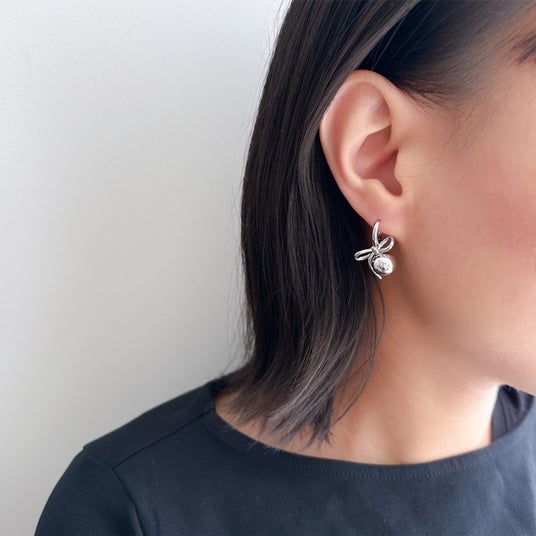 商品名:リボン×メタルボールピアス