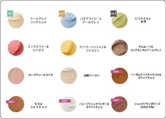 商品名:香るティージェラート価 格:ダブル ¥715(税込) トリプル:825(税込)種 類:12種類からお選びいただけます。