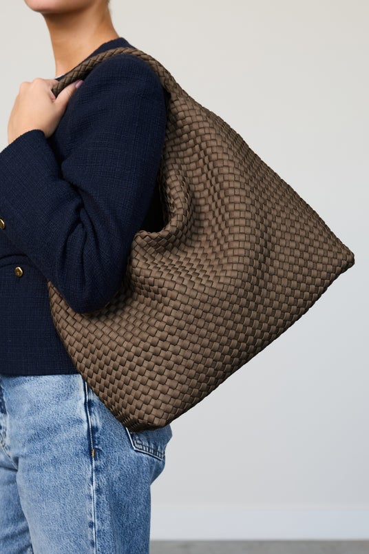 撥水性と耐久性に優れたネオプレン素材を手編みで仕上げた軽やかな印象のメッシュ素材は、季節を問わず使える通年素材。ニットやコートなど、重くなりがちな秋冬のスタイリングに抜け感を与え、毎日の装いに自然となじみます。