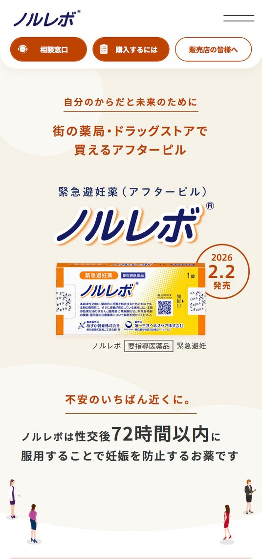 緊急避妊薬(アフターピル)「ノルレボ(R)」2月2日(月)の販売開始に向けてブランドサイトを公開